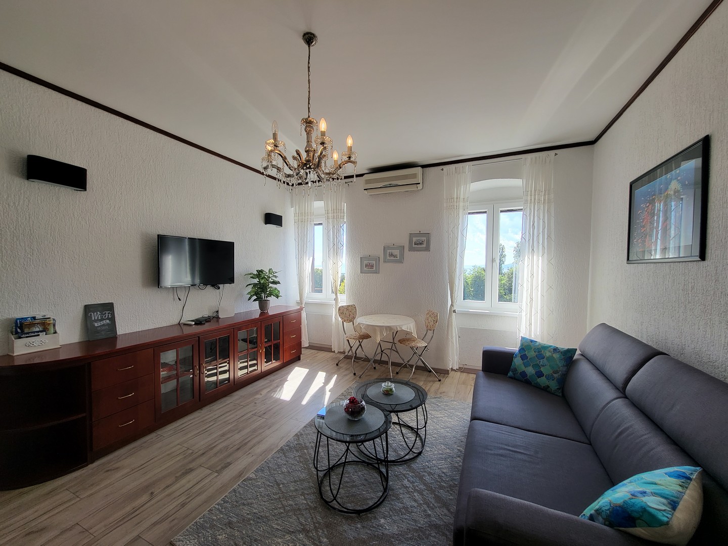 Bright, comfortable, spacious, stylish apartment with a beautiful view! Located just 1 km from the city center, less than 10 minutes walking from ZTC shopping mall and 5 minutes driving to the beach Kantrida. Free street public parking. Walking distance to the center, supermarkets, bars and restaurants. Fully equipped 1 bedroom apartment, kitchen, living room, dining room and bathroom.